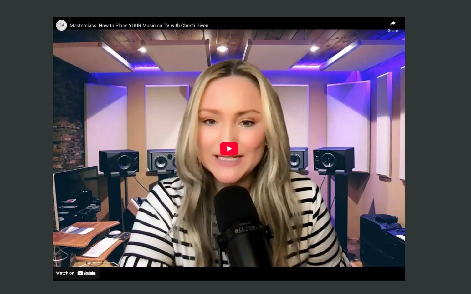 Learn in just 50 minutes how to get your music and voice featured on TV shows, just like coach Christi Given. She has successfully placed over 350 of her songs on networks like A&E, Bravo, Lifetime, E!, and others.